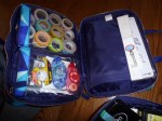 Once I got all that stamping out of my system I still had to narrow down my resources. Thankfully, I wasn’t flying so I could load up my suitcase. I like things to be organized or they get lost easily. I found matching toiletry bags which hold the basics. Then I have a large tote for notebooks and paper as well as pens organized in lots of cases!