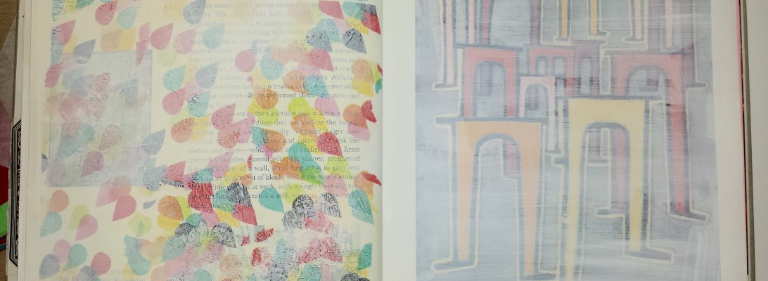 I’ve started turning on the video camera when I’m working at my art desk. Personally, I really enjoy watching the creative process of other artists; I often get inspired or learn something new. Here’s me creating backgrounds in an altered book. (There’s no sound; I figured you could add your own if you wanted a soundtrack.)