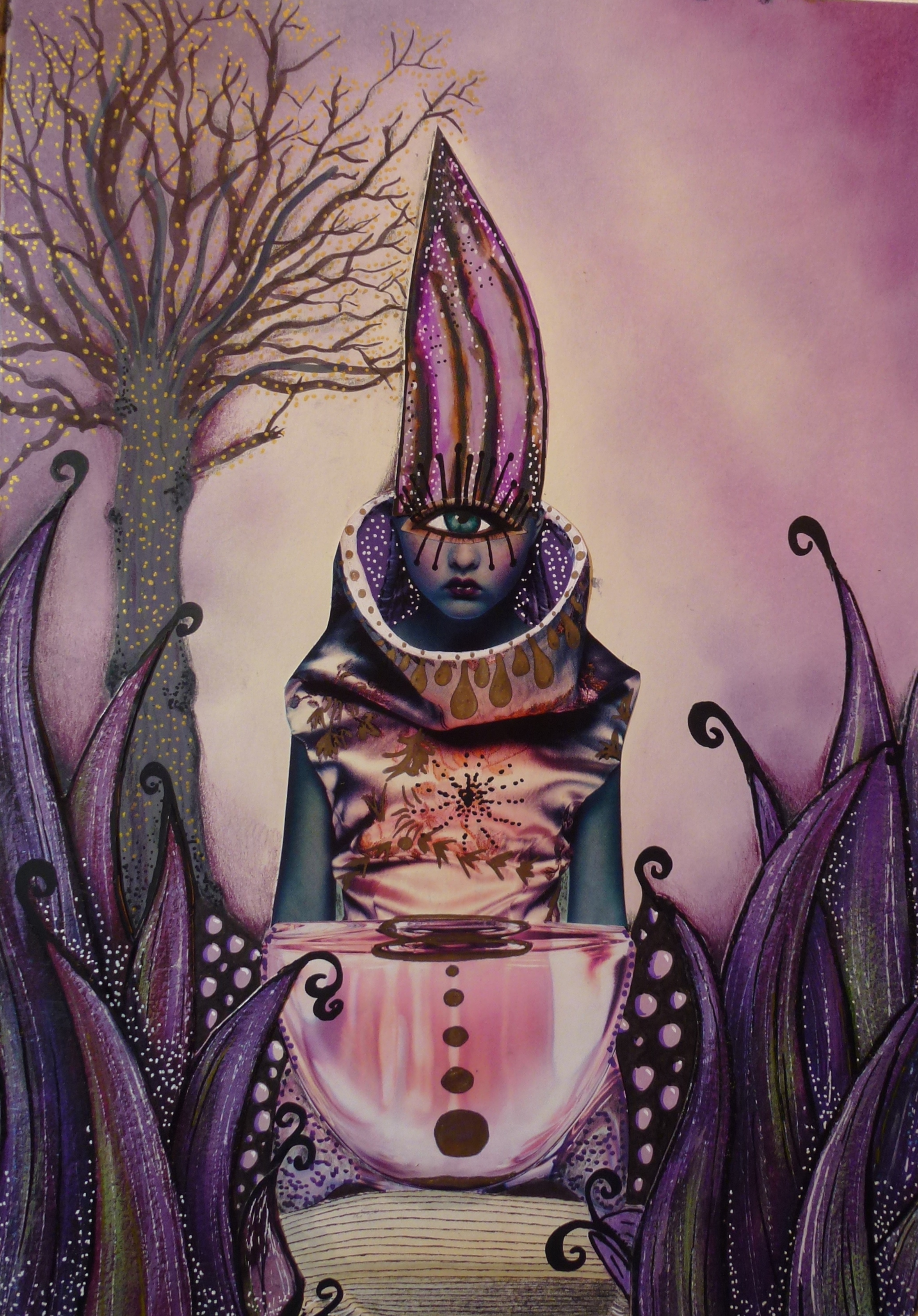 The red bird is a collage item from a color laser copy of another of my projects. I added the tree and buds.