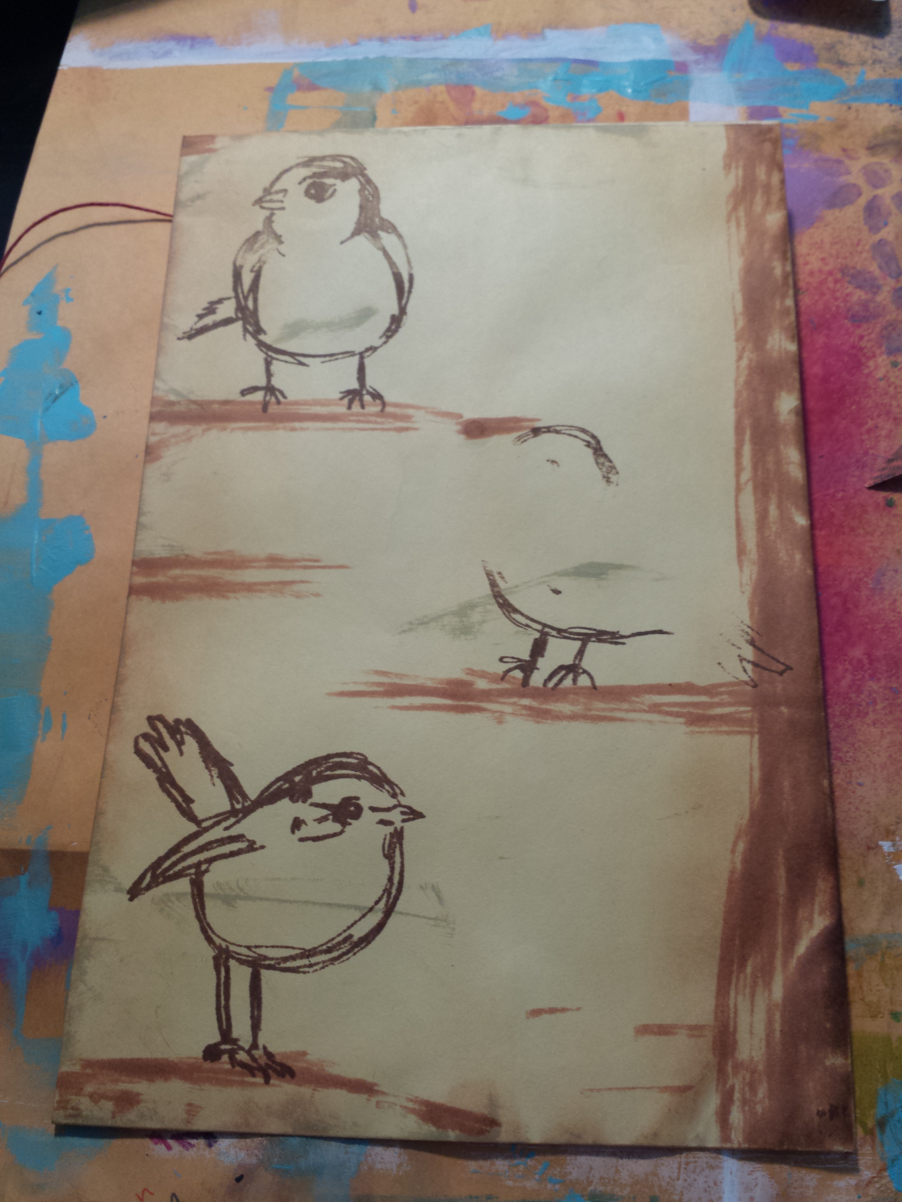 I was perusing some thrift store shelves recently and came across this box of manilla envelopes. So cool! For $3 I felt I couldn’t go wrong. No sooner were they on my desk then they started calling to me. Why I was inspired to put birds on the cover I don’t know, but I love the result!